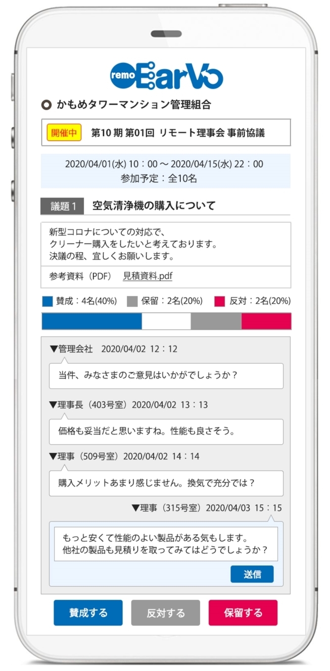 今では、リモ・アーボで事前協議し、本会議はリモート会議ツールで顔を合わせて議論しつつ、リモ・アーボで賛否投票して決議、という形で利用しています。