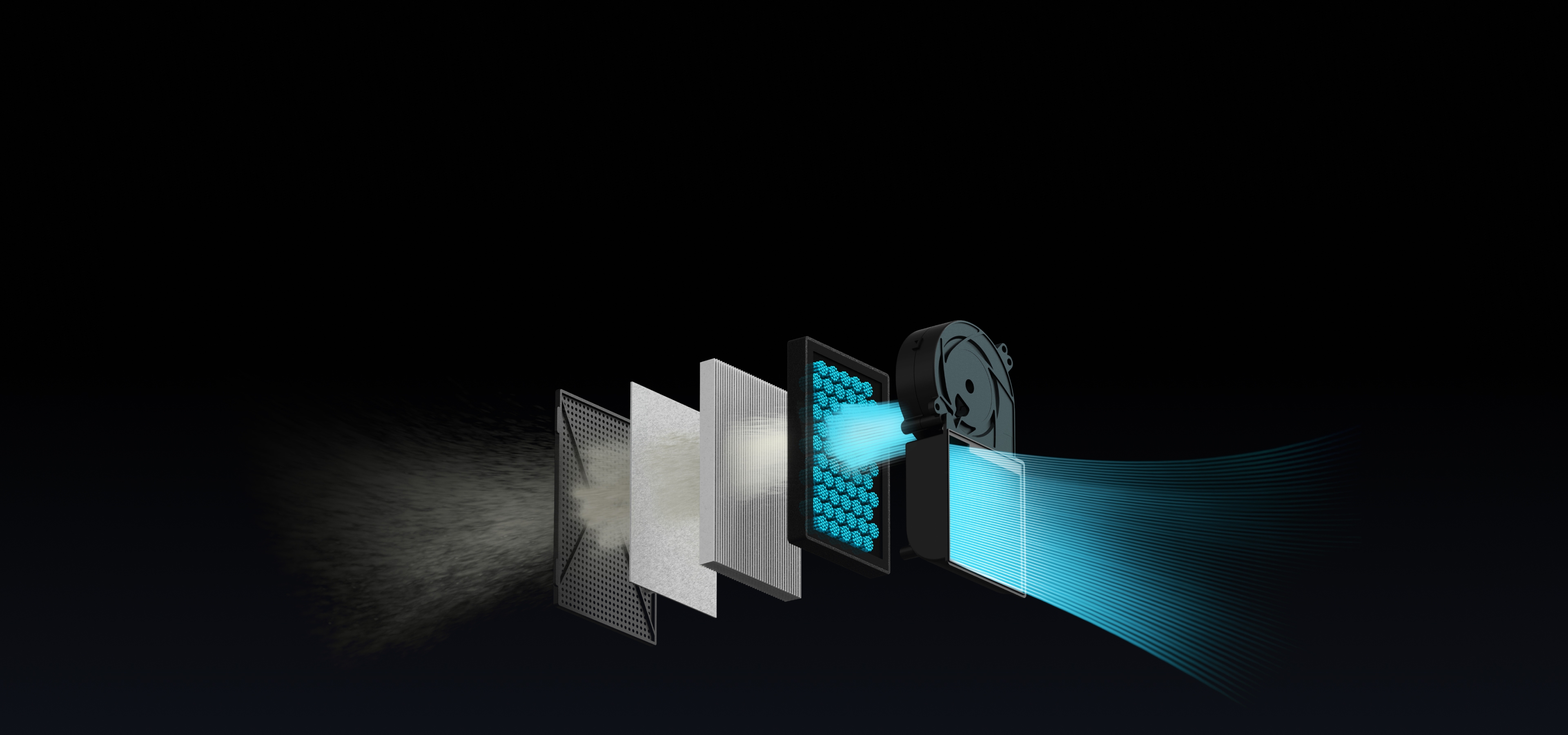 G3プレフィルター、H12 HEPAフィルター、そして高品質のココナッツシェル活性炭フィルターを組み合わせ、効果的に空気をろ過します。