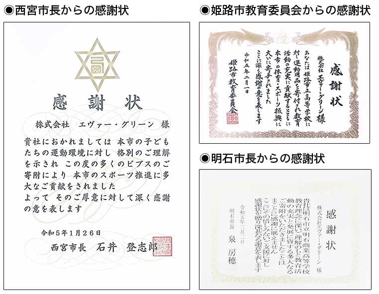 この度、弊社株式会社エヴァー・グリーンはB.LEAGUE所属のプロバスケットボールチーム・西宮ストークス様のご協力のもと、西宮市立・尼崎市立・明石市立・姫路市立高等学校(合計9校)へビブス180着を寄贈いたしました。