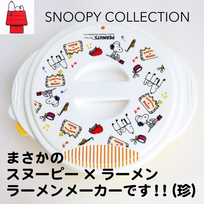 こちらが、スヌーピーのラーメンメーカーです。楽器とスヌーピーがプリントされているデザインになっていますね。