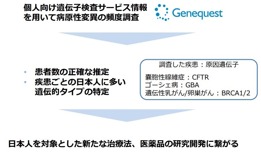 タイトル:DTC遺伝子検査サービスの情報を用いた日本人集団における希少難治性疾患関連遺伝子(CFTR, GBA, BRCA1, BRCA2)の頻度解析とその有効性に関する検証