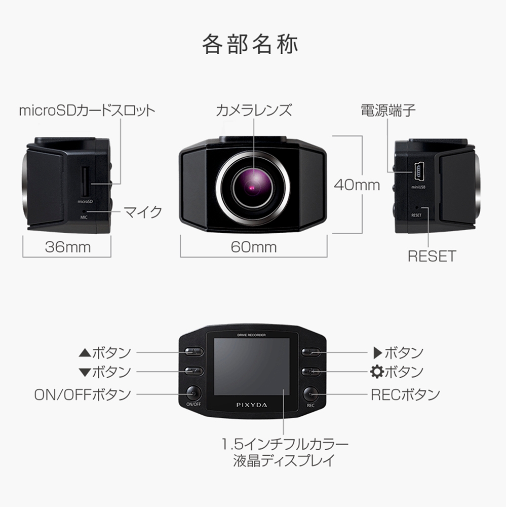 1.5インチのコンパクトサイズに「フルHD録画」「広範囲録画」「GPS」「HDR/WDR」などを搭載した高機能ドライブレコーダーです。