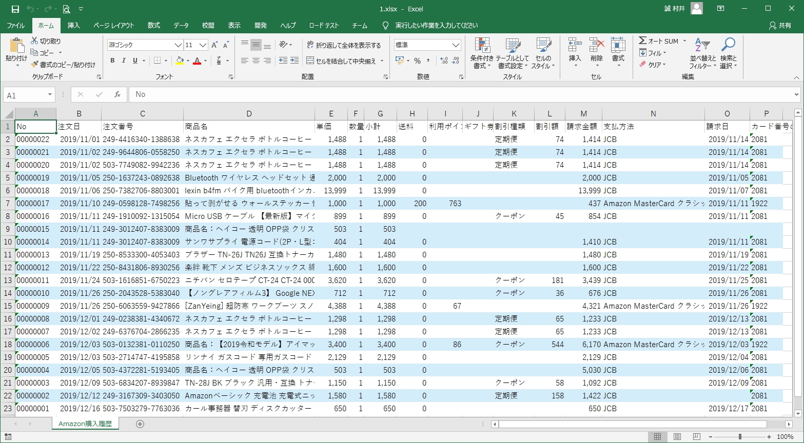 「KaimonoToExcel」は、Amazon等のネットショッピングで買い物をしたリストの取得・集計を行います。