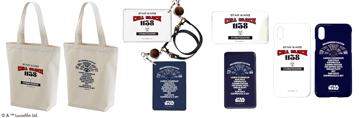 Tシャツ(ユニセックスM/L) 各¥2,900+税、パーカー(ユニセックスM/L)各¥4,900+税、トートバッグ 各¥1,900+税、IDケース 各¥1,500+税、モバイルバッテリー 各¥3,500+税、iPhoneカバー(X/Xs、8/7/6/6s対応) 各¥1,800+税