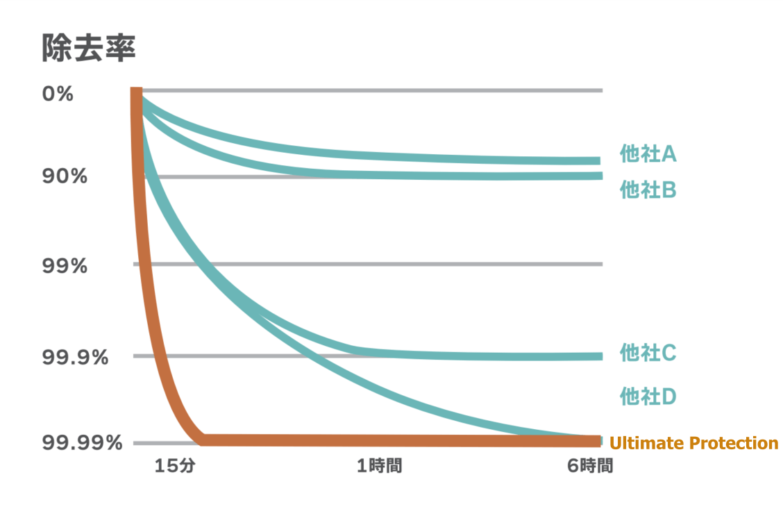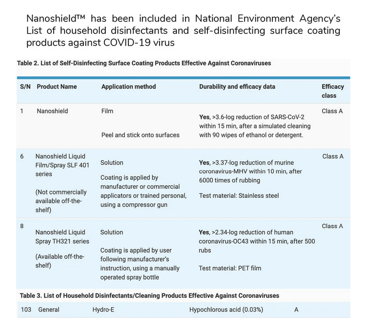 シンガポールNEA公表リストではNANOSHIELDとしてリストアップされており、日本では「ULTIMATE PROTECTION」または「あるプロ」として主に介護業界へ展開されています。個人で扱えるプロ仕様なコーティングシートで任意の範囲内で衛生環境を整える事が可能です。即効性と持続性を兼ね備えた機能性コーティングです。