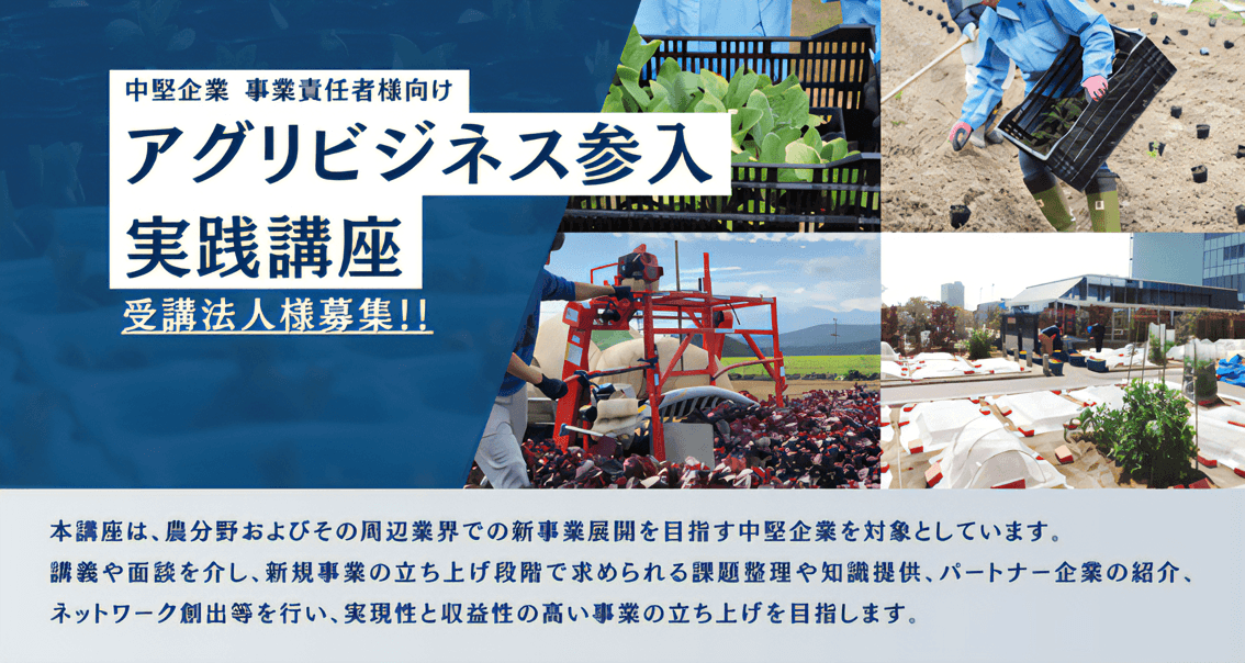 アグリビジネスへの新規参入を支援 「中堅企業 事業責任者様向け アグリビジネス参入実践講座」 受講企業の募集を開始