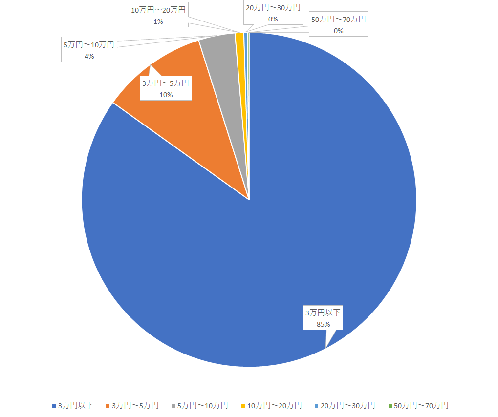 ● 実際に副業で稼いでいる金額は、3万円以下の人が85%