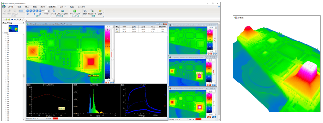 温度分布を3D表示し、温度勾配を3次元で把握することができます。画像の回転も行えます。