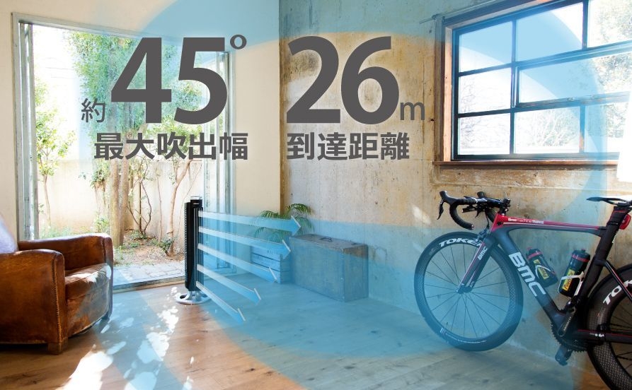 最大26mまで届く強力な風。ボディーは小さめでも効果は絶大。