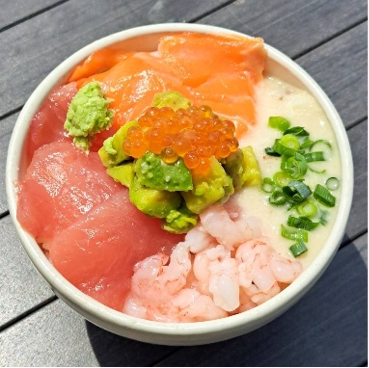 マグロ・甘エビ・サーモン・いくらといった彩り豊かな海鮮を豪快に盛り付けた丼に、自然薯のとろろを合わせた逸品。