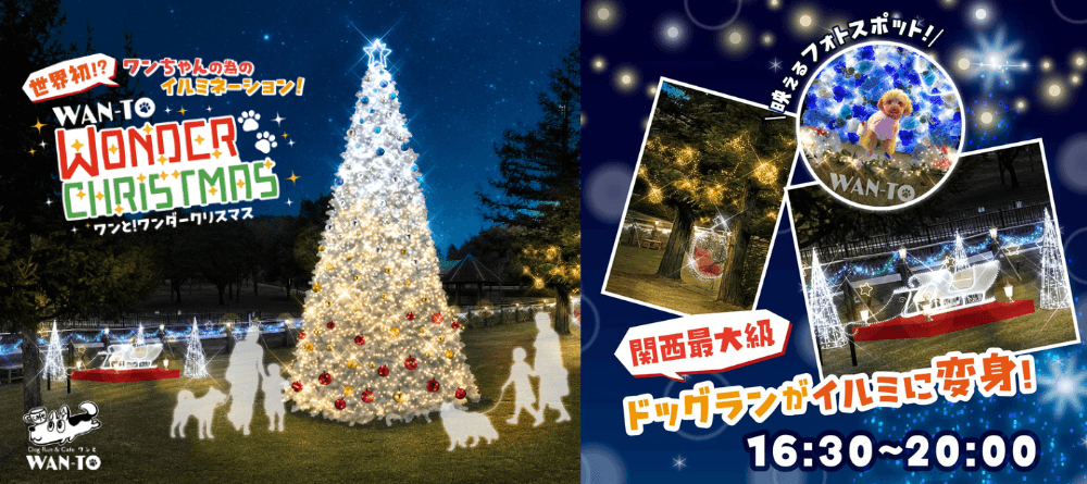 世界初?!ワンちゃんの為のクリスマスイルミネーションイベント 「ワンと!ワンダークリスマス」を12/20(金)~25(水)まで、 とんぼ池公園(大阪府岸田和市)で開催!