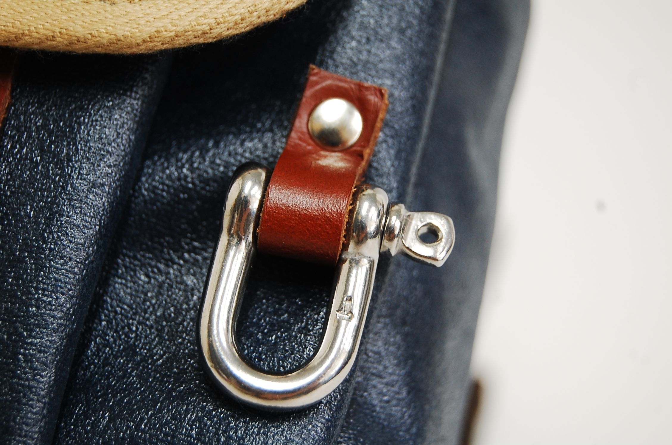 森野帆布鞄は、実際の船舶用金具の「シャックル」がアイコンとして使用されています。