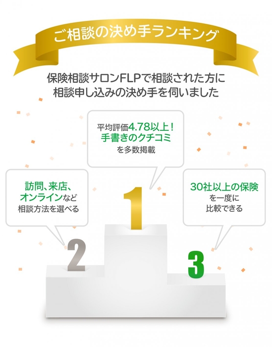 数ある保険ショップから「保険相談サロンFLP」が選ばれる理由とは?ご相談の決め手ランキング!