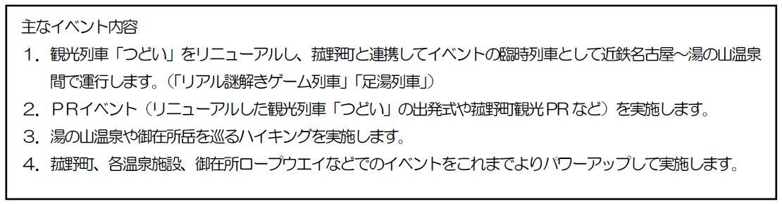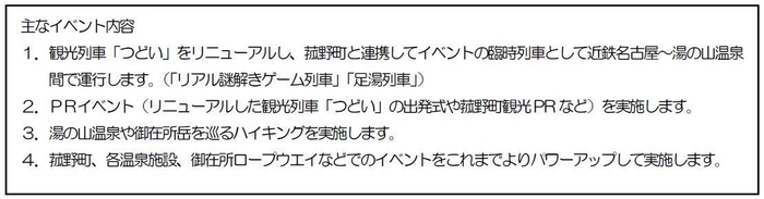 1.観光列車「つどい」をリニューアルし、菰野町と連携してイベントの臨時列車と