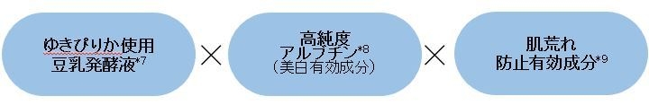 このたび発売する商品は、北海道産大豆『ゆきぴりか』使用の豆乳発酵液7を配合。50種類以上もの大豆について美肌に関する効果の研究を積み重ね、美白ラインに最もふさわしい大豆として『ゆきぴりか』を原料に採用しています。