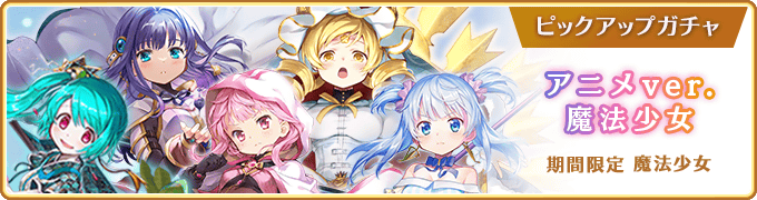 『期間限定 アニメver.魔法少女 ピックアップガチャ』『有償限定 ステップアップガチャ アニメver.魔法少女編』『選べるアニメ登場★4魔法少女 ピックアップガチャ』を開始いたしました。