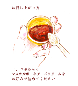ブルーベリーを練り込んだあんことマスカルポーネチーズを使った自家製クリームを歯切れの良い最中皮に、お好みでサンドしていただく一品です。