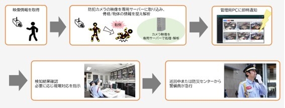 渋谷フクラス内で発生したお客様トラブルや異常を検知した際、防災センターの管理用PCに検知映像が通知され、状況に応じ警備員が急行・巡回を強化する等、「TS-Zero(R)」が警備隊の“目”となり、施設の安全性と警備の網羅性を向上させます。