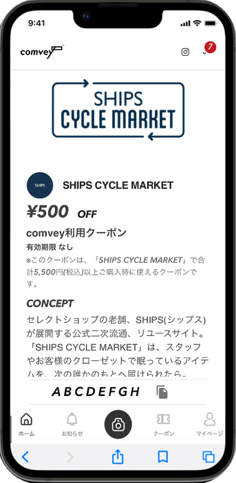 シェアバッグを返却確認後、comveyマイページにてクーポンが発行されます。
