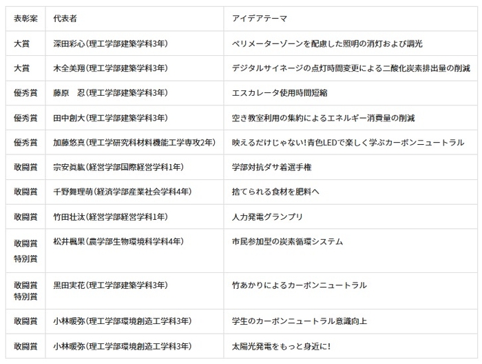 このコンテストは同プロジェクトにて、カーボンニュートラルの実現に向け、学生・生徒・教職員の意識高揚や行動変化を促すことを目的に実施されました。