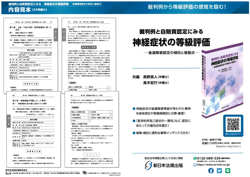 裁判例から等級評価の感覚を掴む!「裁判例と自賠責認定にみる 神経症状の等級評価-後遺障害認定の傾向と着眼点-」4/22新刊書発売! | NEWSCAST