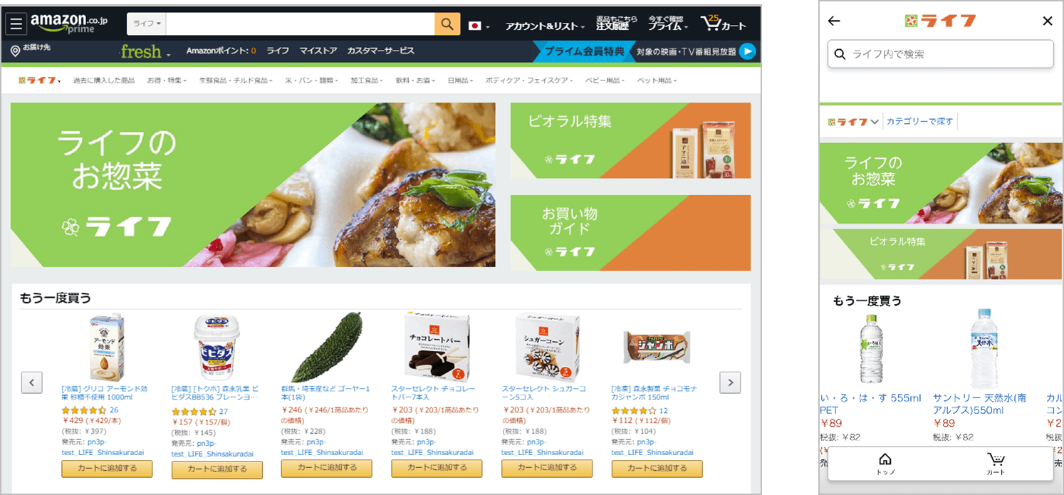 Amazon.co.jpのWebサイトにライフのストアがオープン!ライフの店舗で取り扱う生鮮食品や惣菜をより買いやすく!さらにAmazonショッピングアプリからも注文が可能に!
