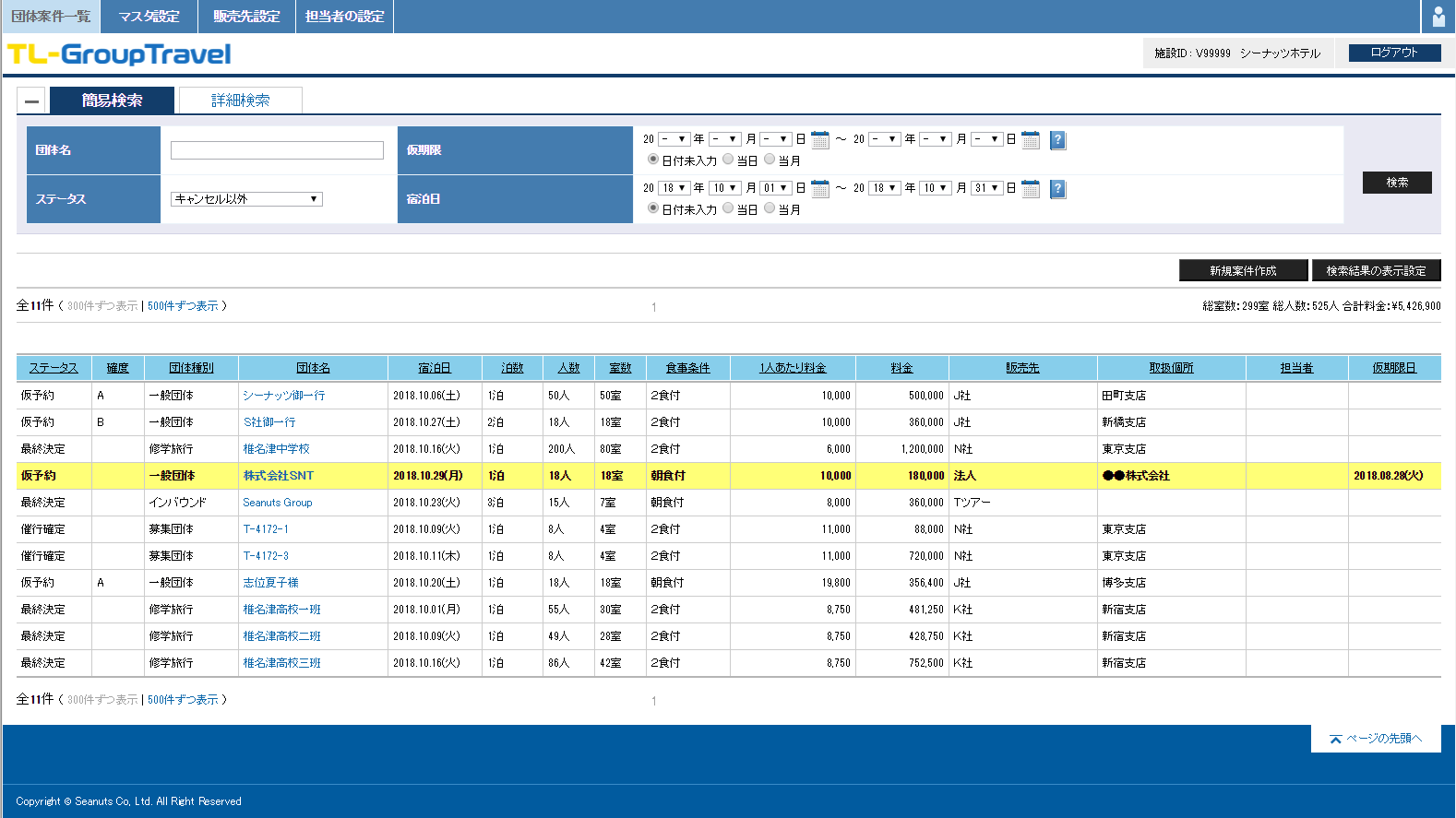 宿泊施設の予約・販売管理システム『TL-リンカーン』を提供する株式会社シーナッツ(本社:東京都港区、代表取締役社長:山田 英樹)は、宿泊施設向けの新サービスとして、団体宿泊予約の案件管理が簡単になる、宿泊施設向けサービス『TL-GroupTravel』を2018年12月より無料で提供開始いたします。