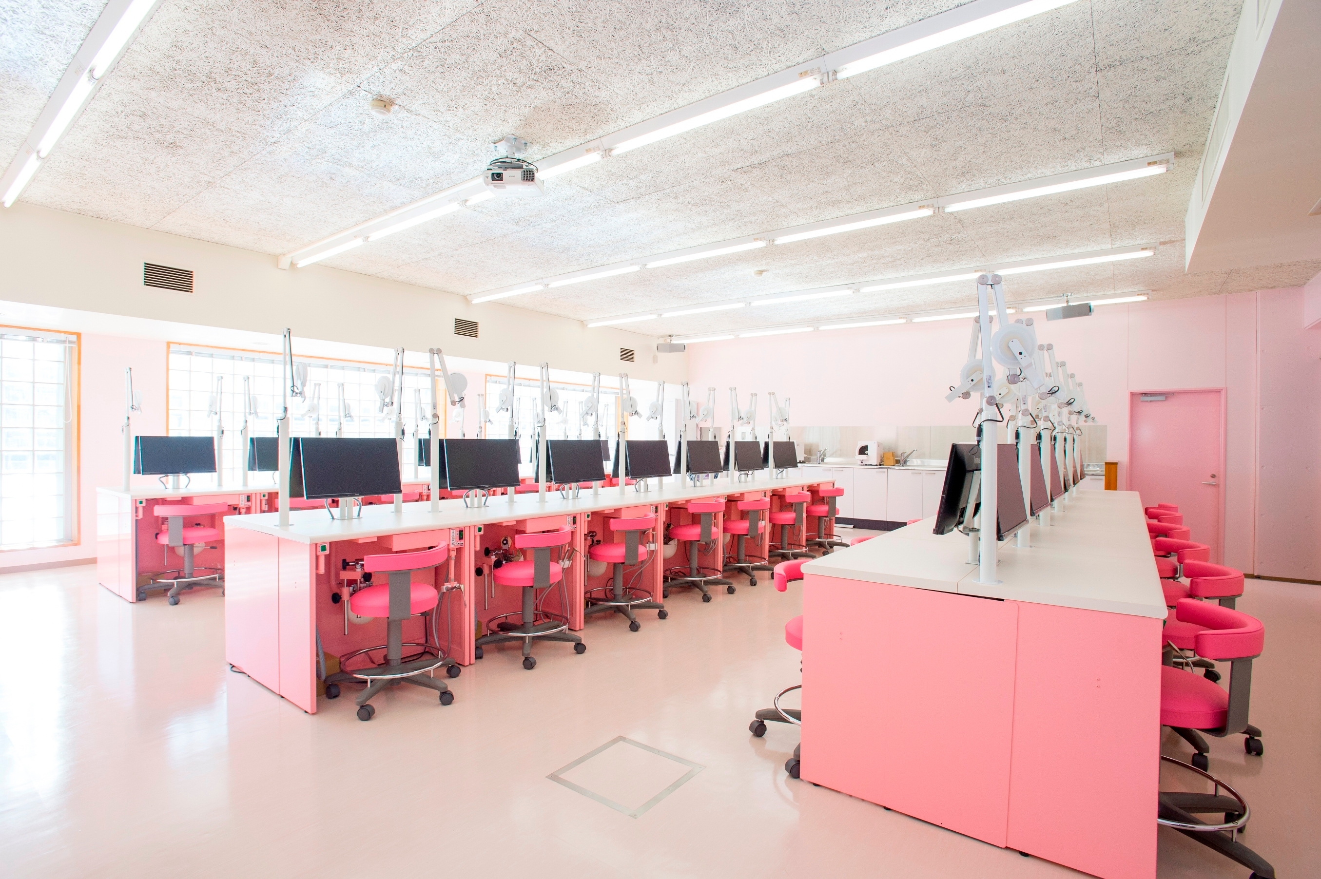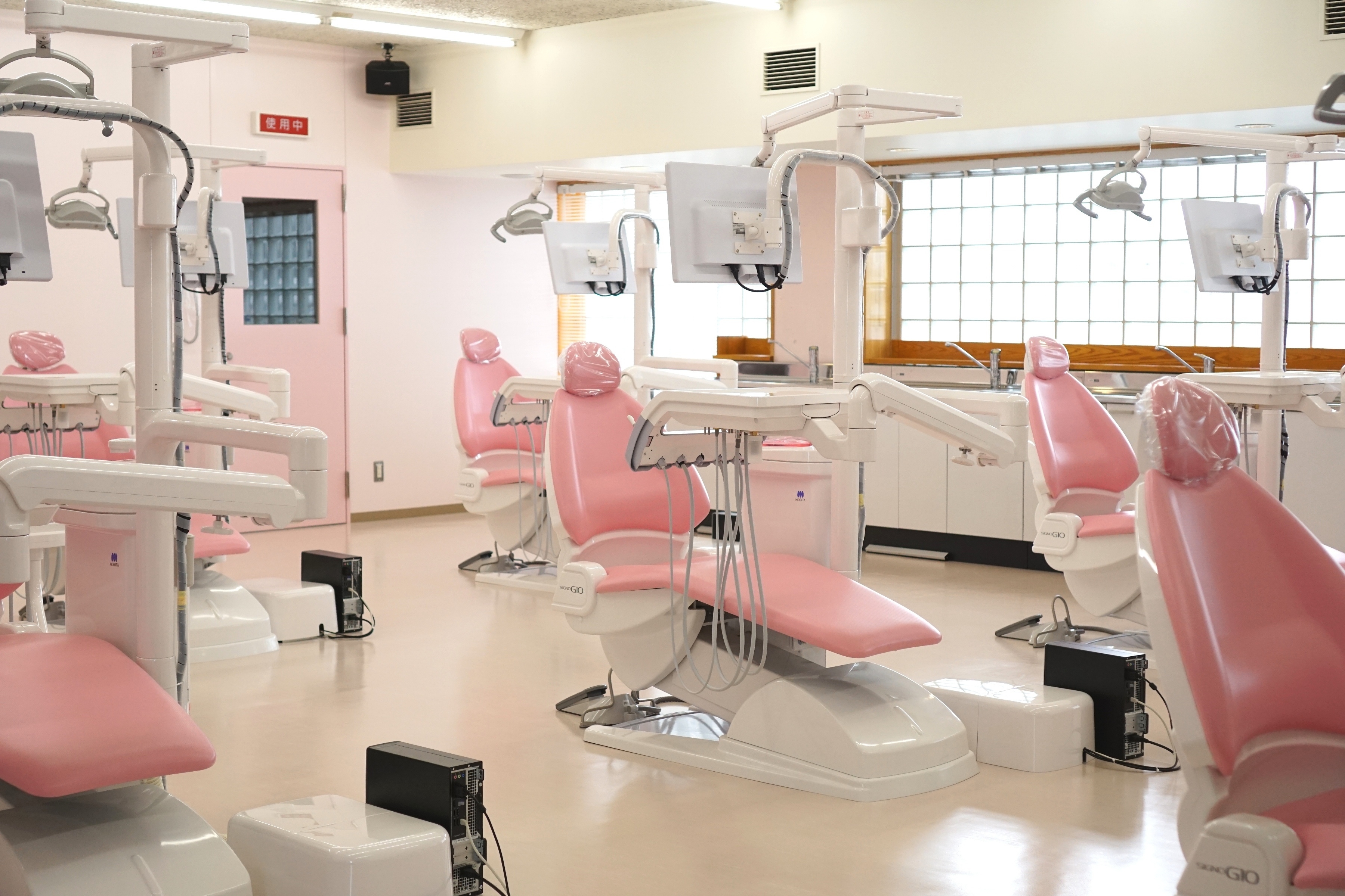 社会に求められる即戦力になるためには基本となる知識・実技の習得が必要で、マネキン40台搭載の最新設備で基礎実習を行い、その後歯科用ユニットを使用して相互実習を行います。2年次後期・3年次に臨床実習場として、病院・歯科医院等で経験豊富な講師陣のもと応用的な技術の習得を目指します。