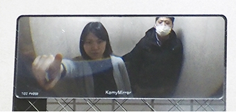 マンション用のエレベータには防犯カメラの普及が進んでいます。しかし乗っている本人は、内部にモニターがなければ背後の様子を知ることができません。