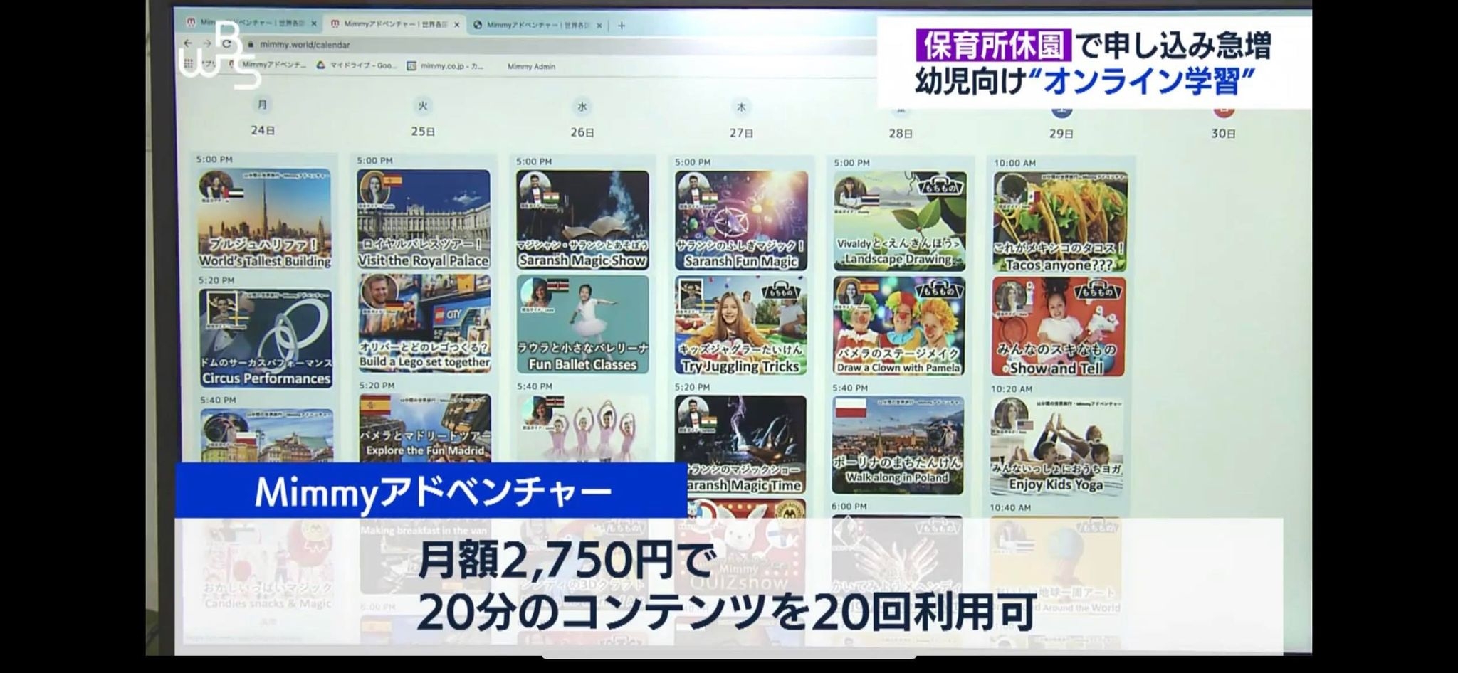 株式会社Mimmy(代表取締役社長 & CEO :関根 謙太、所在地:東京都港区、以下Mimmy)が展開する、オンライン海外体験サービス『Mimmyアドベンチャー』が、1月24日(月)、テレビ東京「ワールド・ビジネス・サテライト」にて、保育所や小学校が新型コロナウィルスの影響で休園・休校する中での「保護者を支える注目のサービス」として紹介されました。