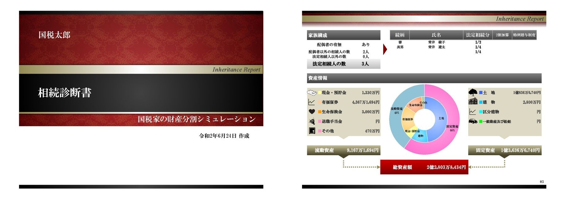 ・土地・建物・有価証券・現預金などから豊富な財産分割をシミュレーション