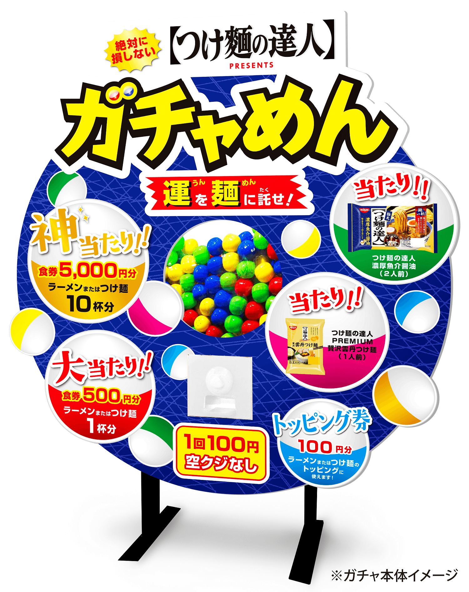 協賛:日清食品チルド「つけ麺の達人」が贈る、出血大サービスの太っ腹企画「ガチャめん」を実施!