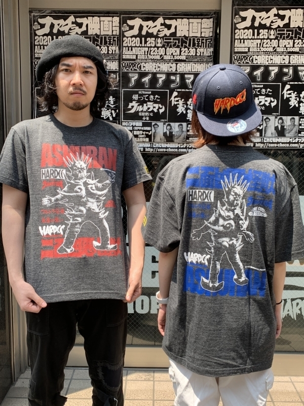 因縁深いセブンガーがTシャツになるなら、俺だって黙っていないぞ!と言わんばかりにハードコアチョコレートに乱入!アシュラン初のTシャツ化はもちろん両面仕様に!