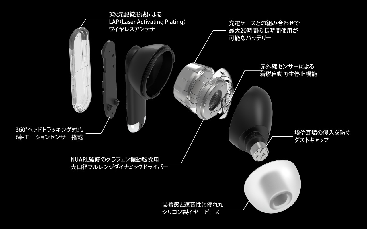 ヘッドトラッキング対応完全ワイヤレスイヤホン