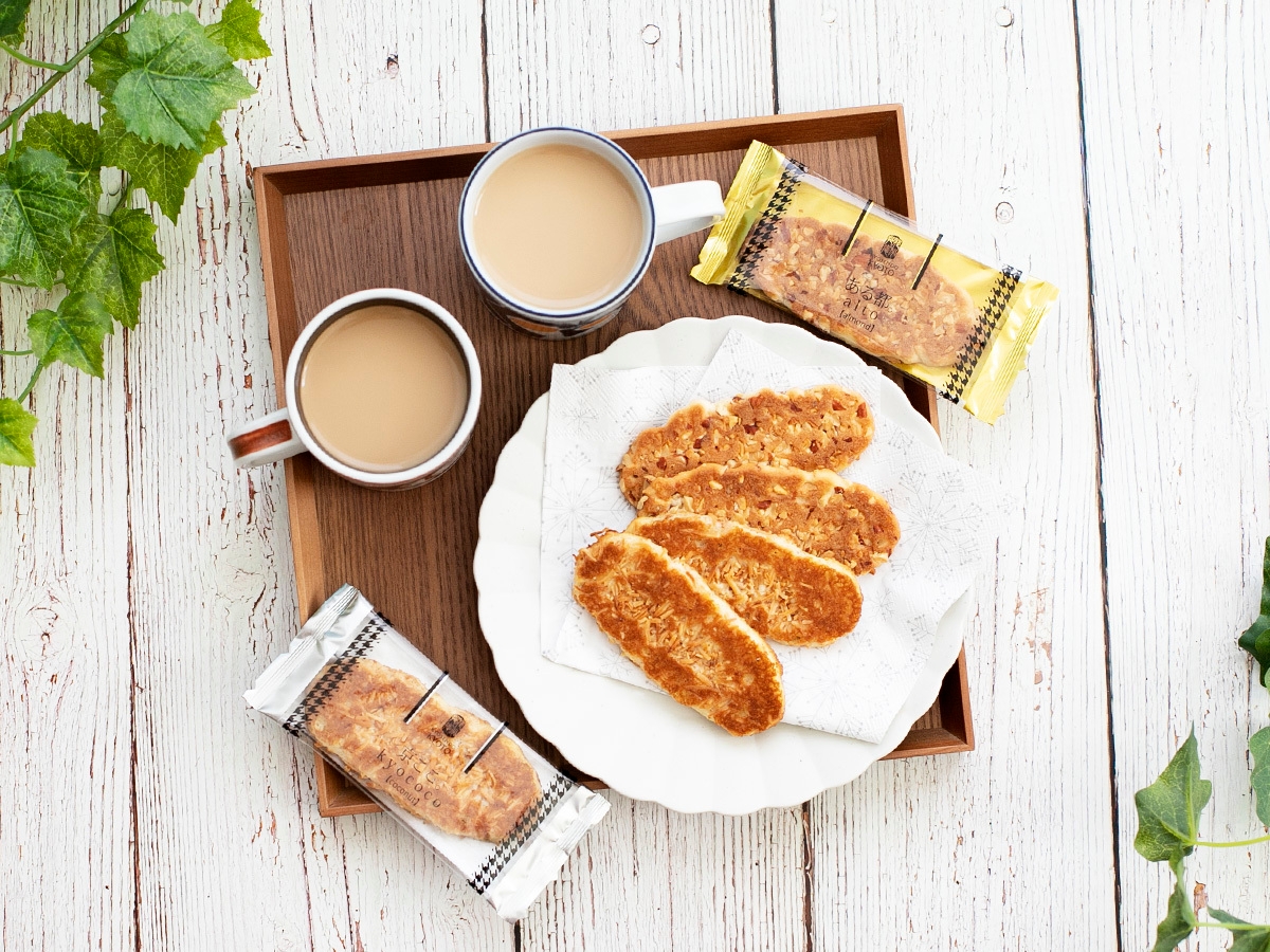 以前から人気のココナッツを使った洋風焼き菓子「京ここ。」に加え、アーモンドクラッシュを使った「ある都。」を新たに開発。