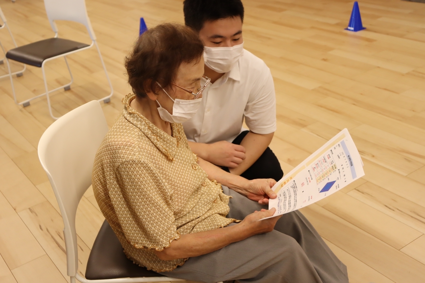 健康まちづくりをコンセプトにした多世代交流拠点として、2019年に銀行の跡地をリノベーションした「ユソーレ相武台」を主な拠点に行っている「フレイルチェック会」は、地域の高齢者にフレイルの啓発と心身状況を把握する機会を提供し適切な支援に繋げるための、いわば地域高齢者の健康づくりにおけるゲートウェイとしての機能を果たす中核事業です。会にて支援が必要と判断された高齢者は、地域包括支援センターが上記の(2)(3)(4)を案内するなどフォローするものです。