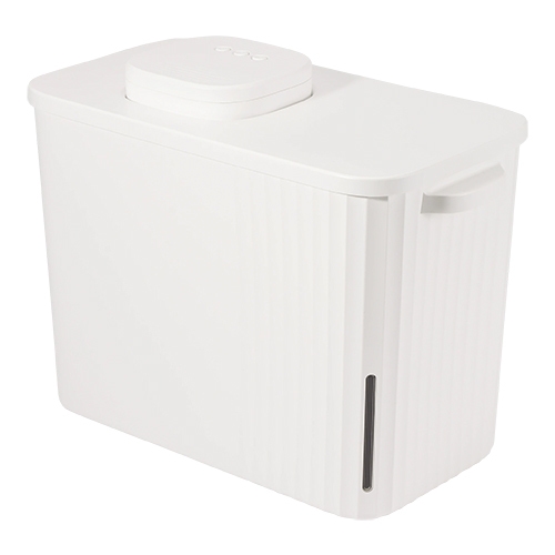 これまでの大型の保存容器には丸型や楕円が多かった中、スクエアタイプにすることでキッチンのスペースにも収まりやすくしました。冷蔵保存していた粉物やお米もまとめて保存が可能になり、今まで場所をとっていた冷蔵庫のスペースもスッキリします。蓋の部分はパッキン付きでしっかり密閉することができ、中の食品を匂い移りや酸化、虫の侵入から守ります。専用アプリ搭載で、バッテリーの残量や稼働状況の確認ができ真空切れも防ぎます。また、タンクと蓋は丸洗いが可能なので食材を衛生的に長期保存することが可能です。