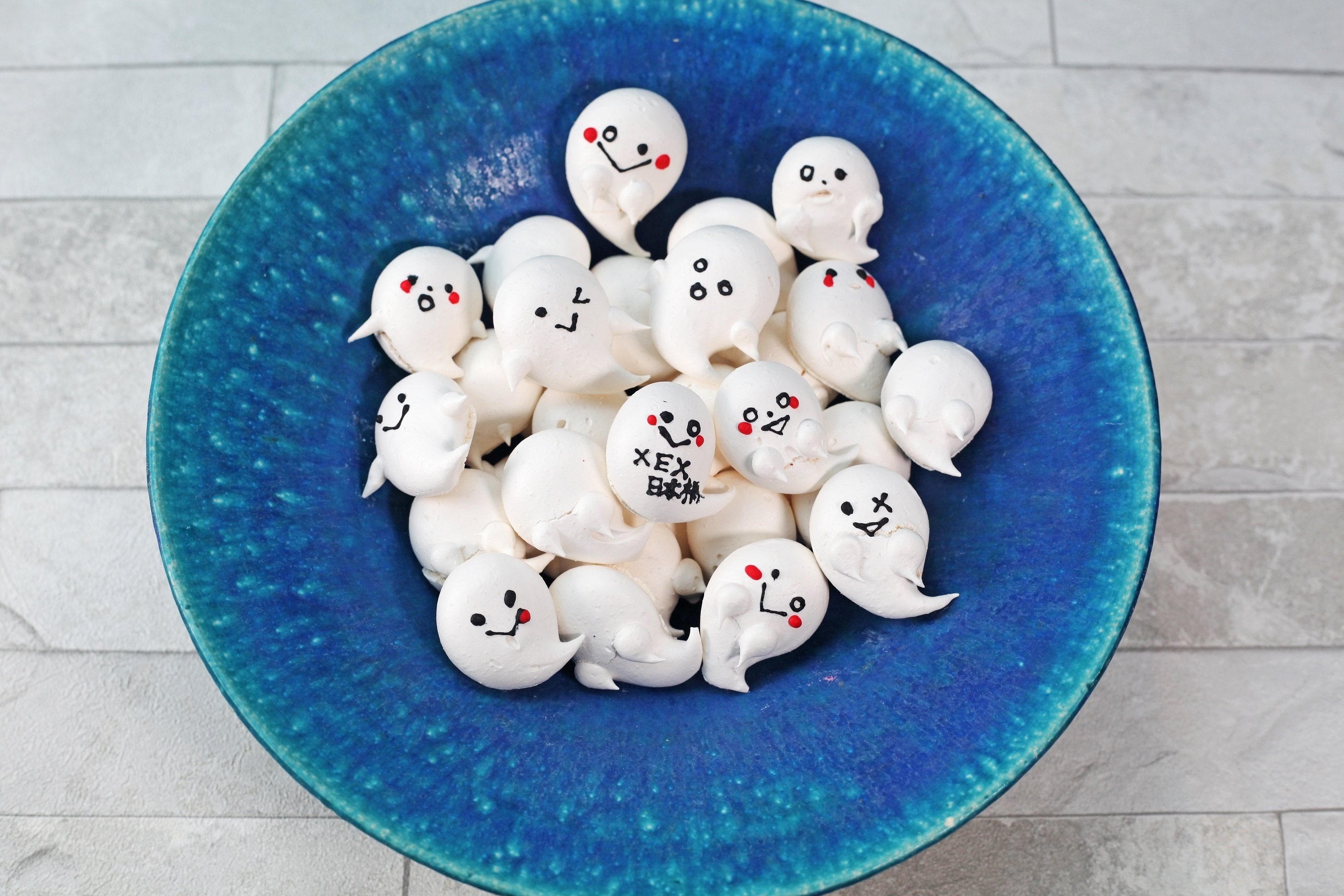 縁日のおばけ屋敷から抜け出してきたような小さなおばけ型メレンゲ。
