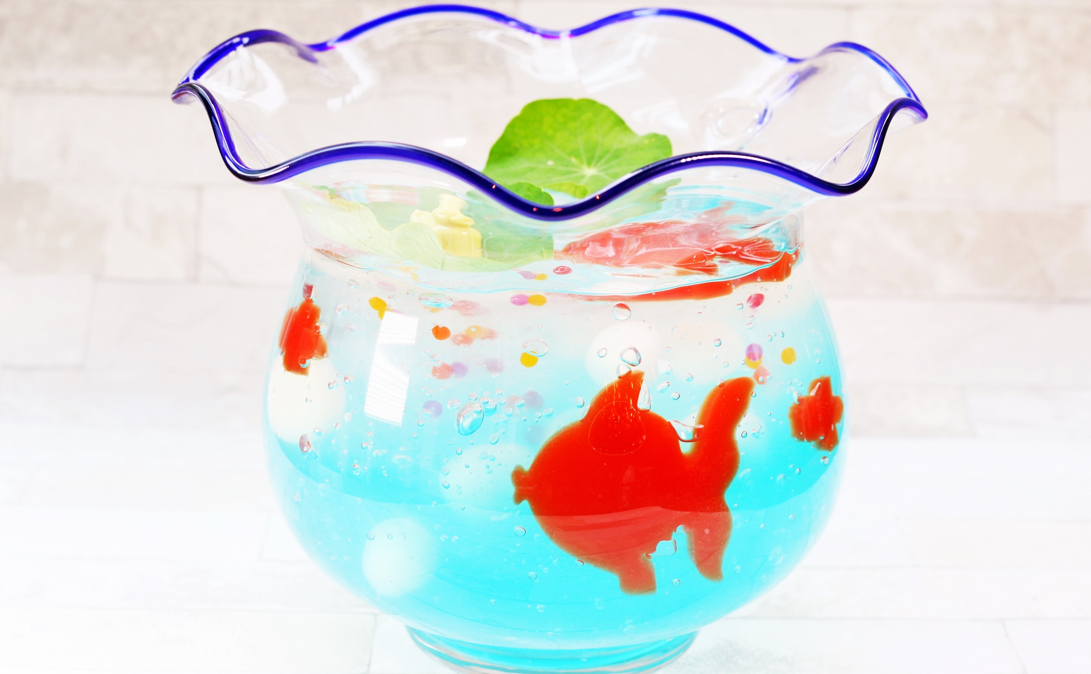金魚型のゼリーが泳ぐ白玉が入ったフルーツポンチ。