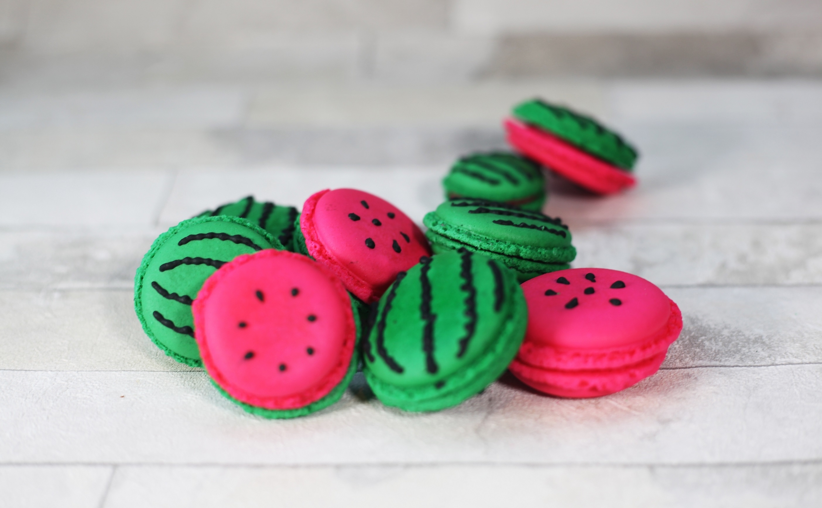 スイカに見立てた色鮮やかなビビットカラーマカロン。