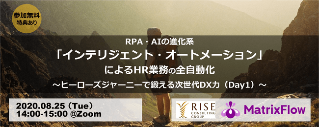 株式会社MatrixFlow(本社:東京都三鷹市、代表取締役:田本 芳文)と株式会社ライズ・コンサルティング・グループ(本社:東京都港区、代表取締役社長:朝日 竜樹)は、RPA・AIの進化系「インテリジェント・オートメーション」によるHR業務の全自動化セミナーをオンラインで開催いたします。