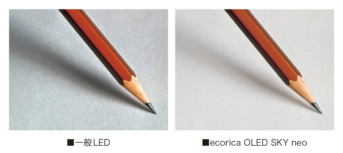 ■一般的なLED照明の点発光と違い、OLEDは面発光なので「まぶしさ」や「対象物の強い影」が少なく、デスクでの繊細な作業に最適な光を提供。デスクワークの集中力持続をサポートします。