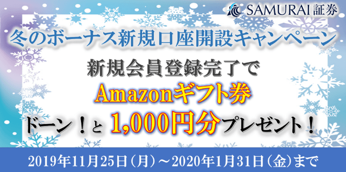 当社では、現在、2020年1月31日(金)までに新規会員登録(無料)を完了されたお客様を対象に、Amazonギフト券1,000円分をプレゼントしております。この機会に是非新規会員登録をご検討ください。