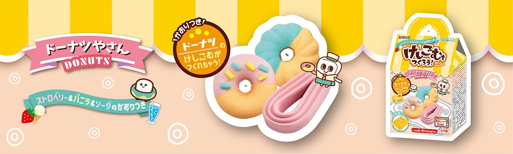 「レストラン」「おべんとう」「おすし」はコーンスープとレモンの香り、「アイス」「ケーキ」「ドーナツ」はストロベリーとバニラ、ソーダの香りがついています。