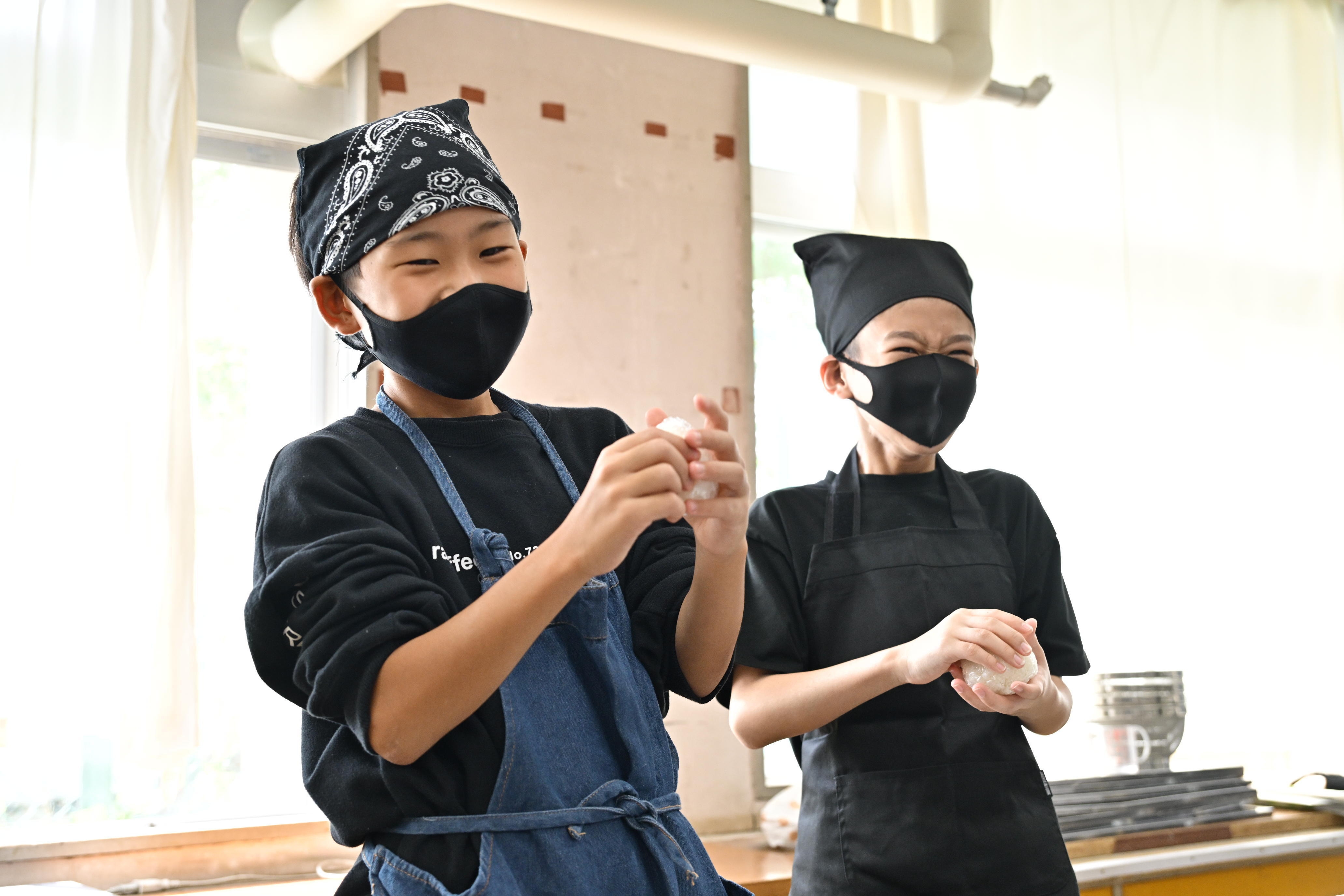講演を聞いた後には、充分に水を含んだ「粒すけ」をガラス製の鍋で炊飯し、大粒でほどよい粘りがある「粒すけ」が炊ける様子を観察しました。炊き上がった「粒すけ」は児童の手で握られ、千葉県産の海苔で巻いて完成。授業を振り返って代表児童2名が「今日は粒すけについてたくさん知れて、みんなとおにぎりを作れて楽しかったです。ありがとうございました」と感想を述べ、「粒すけ」への学びと美味しさを味わえるイベントとなりました。