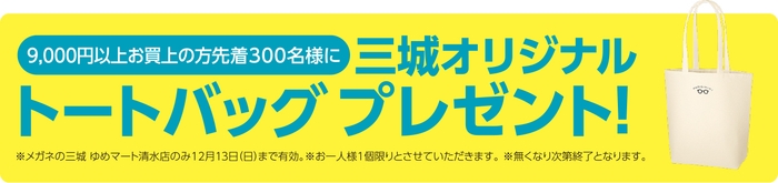 オープン記念として、9,000円以上お買上の 先着300名様に、三城オリジナルトートバッグをプレゼントいたします!どうぞこの機会にゲットしてください!