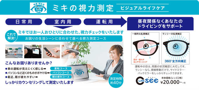 「ビジュアルライフケア」6つの視力測定コースで、見え方のお困りを解決!