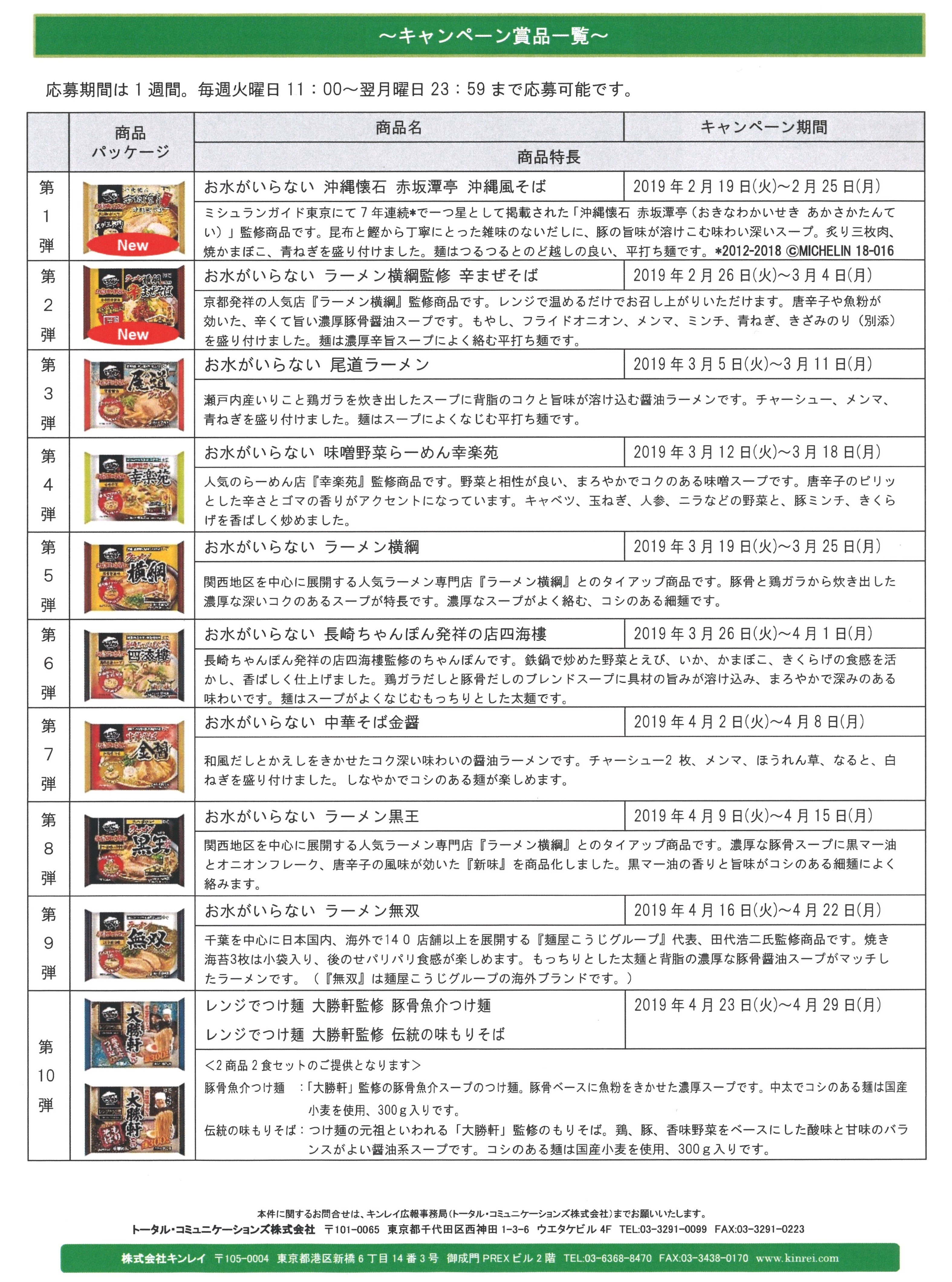 これを記念して、新商品を含む10品が総勢1,000名様に当たる、新商品発売記念キャンペーンを2019年2月19日(火)より10週連続で実施いたします。