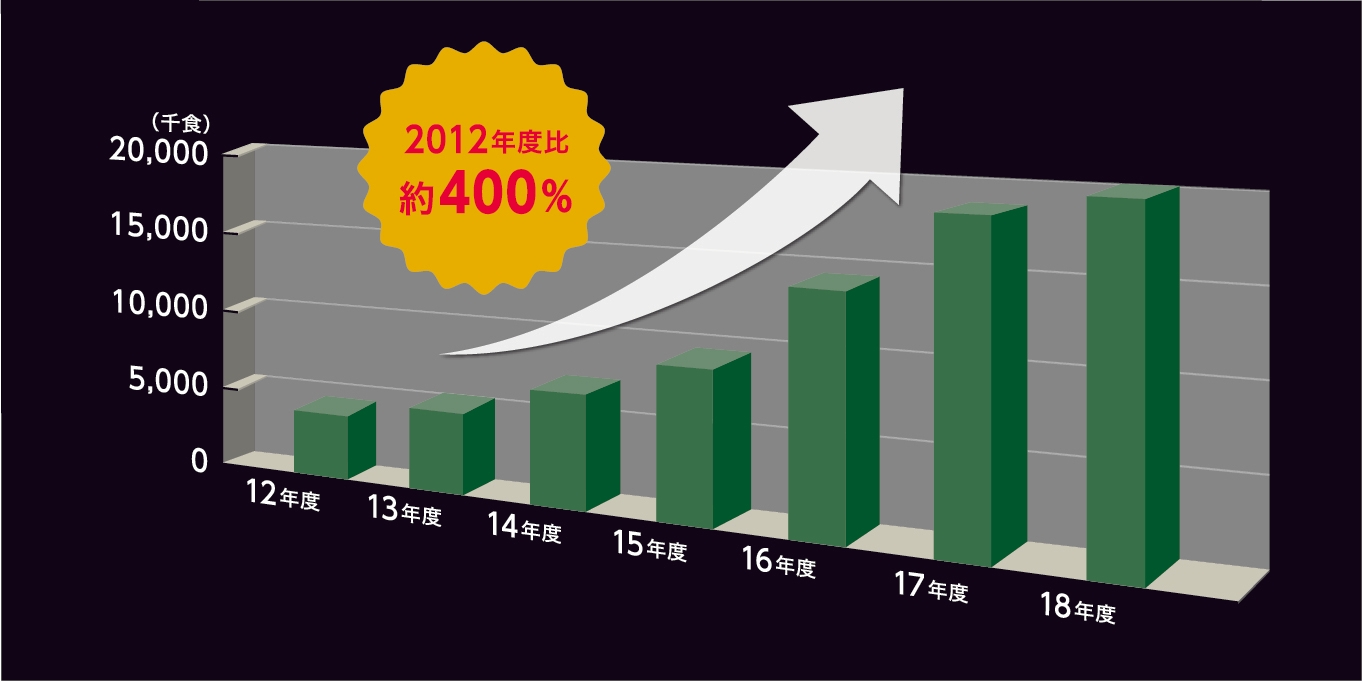 2012年の発売以来伸長してきた「お水がいらない」シリーズは、おかげさまで年間販売数2,000万食を突破*1致しました。また、シリーズ出荷実績は2012年度比約400%*2となりました。