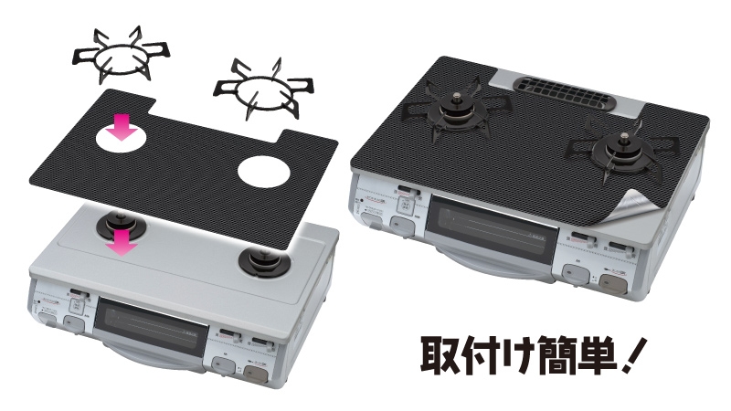 ゴトクの下に置くだけの簡単取付けで、交換もすぐにできます!